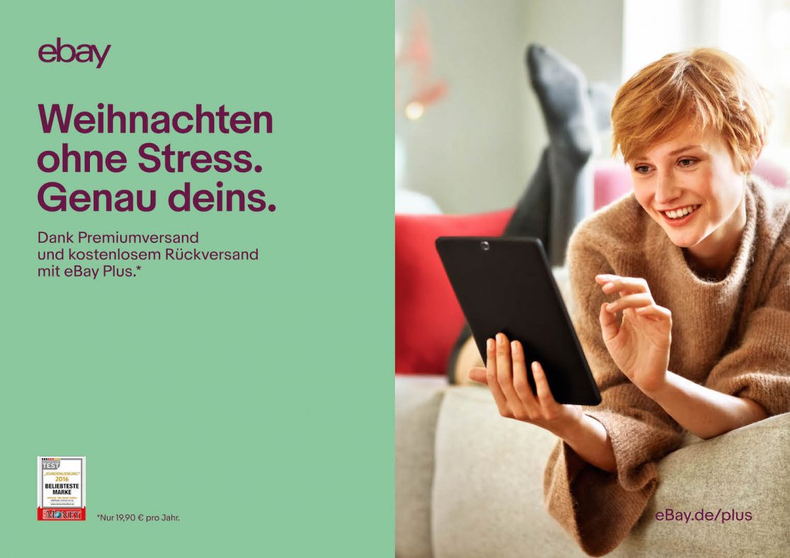 Was hab‘ ich getan?! Mitentwicklung der eBay Weihnachtskampagne, inklusive Begleitung der Filmproduktion mit Vignetten-Entwicklung, Sprachaufnahmen und Schnitt-Varianten für unterschiedliche Online-Zielgruppen sowie die Abverkaufsförderung für eBay Plus mit Plakat und Radio-Spot.